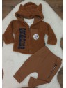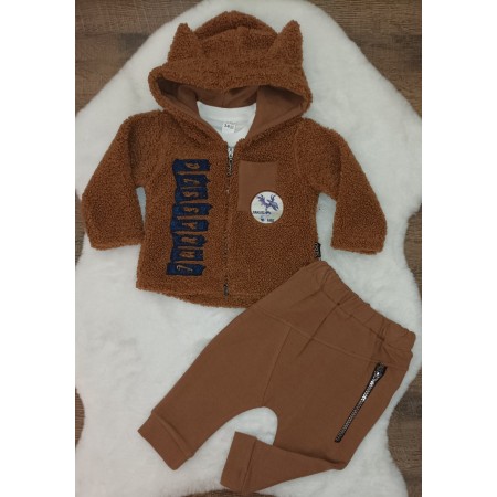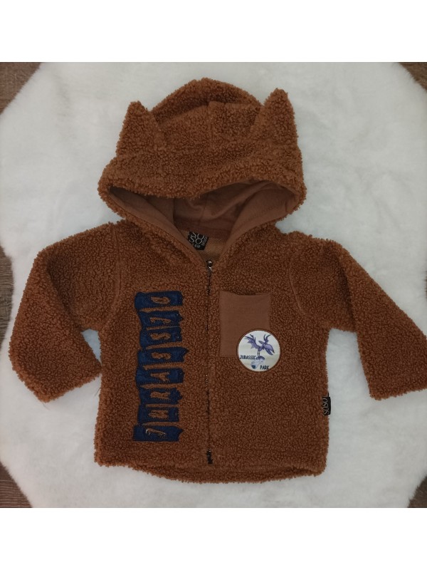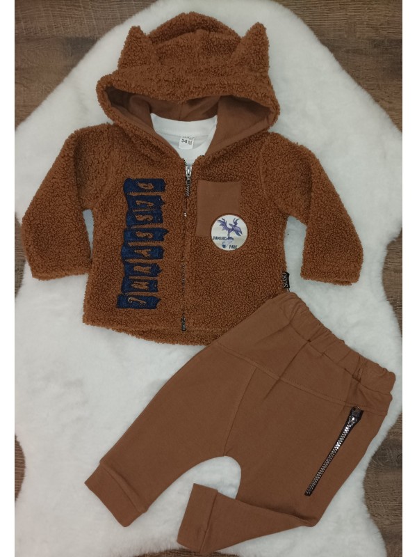 Praktická 3-dielna kojenecká súpravička Jurasic pre bábätká. Súpravička sa skladá z trička, tepláčkov a teplej kožúškovej bundičky .