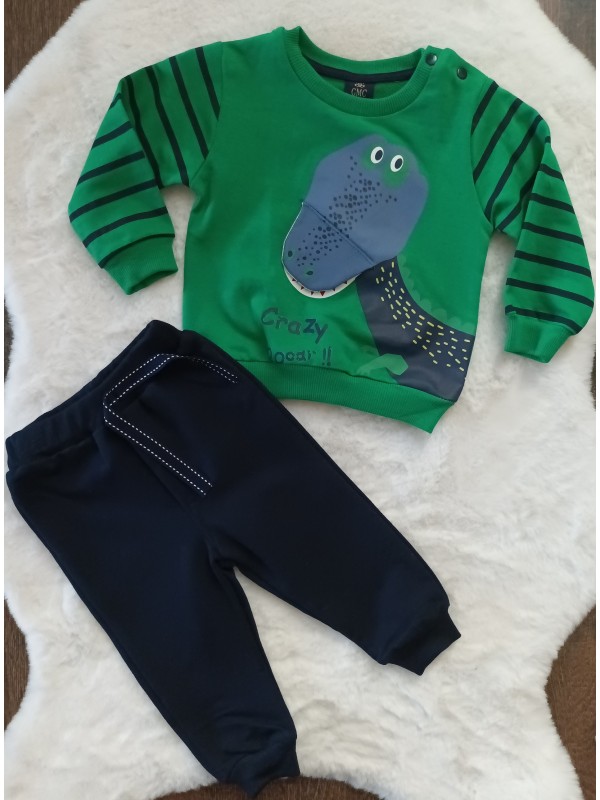 Detská 2-dielna súpravička Drak. Súčasťou súpravičky sú tepláčky a mikinka s aplíkáciou dráčika, ktorému aj ústa vie váš drobec otvoriť.