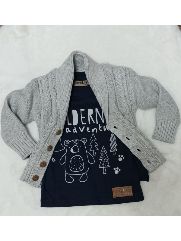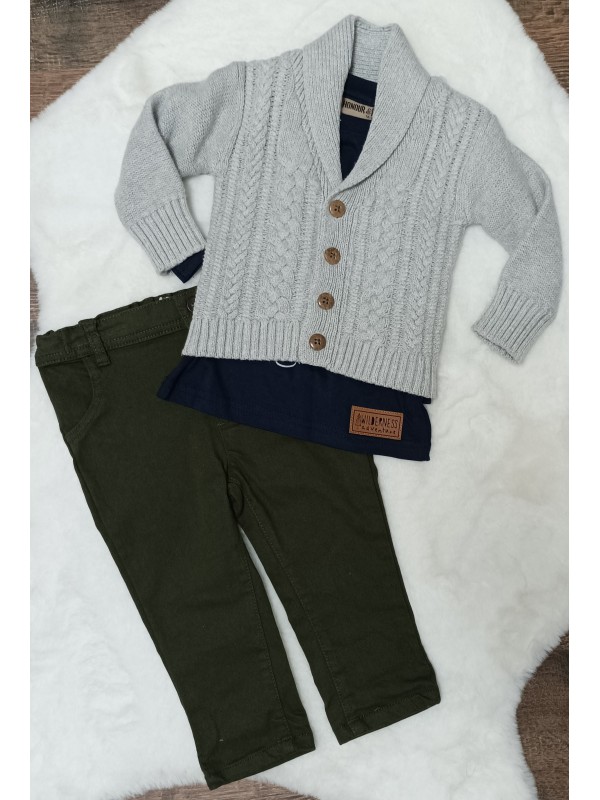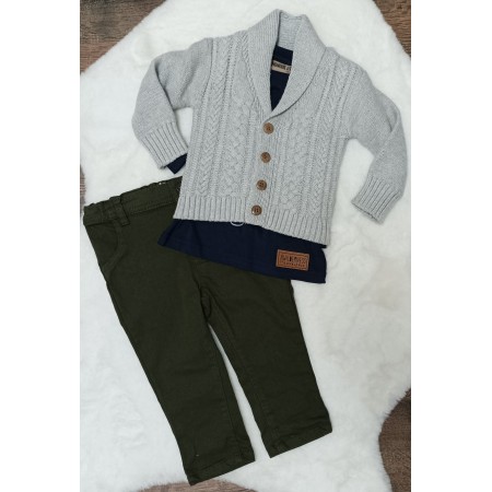 3-dielna športovo-elegantná súpravička. Obsahuje nohavice,tričko a špotovo-elegantný svetrík.