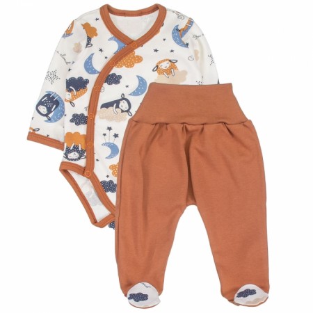 Sada obsahuje: polodupačky, body s dlhým rukávom, zapínanie bokom.Materiál:100% bavlna.