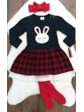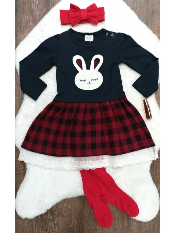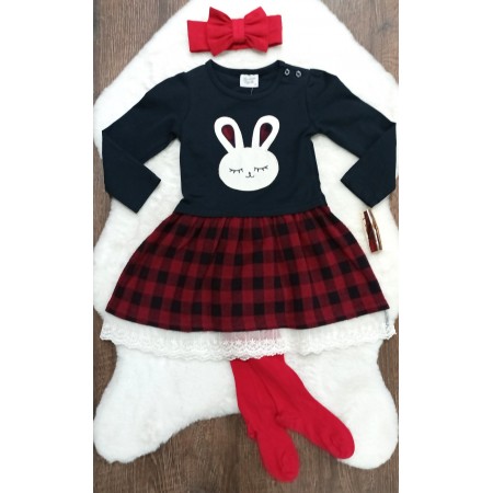 Šatky s obrázkom zajačika a károvanou sukničkou podšitou krajkou