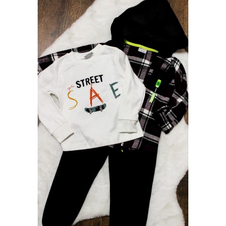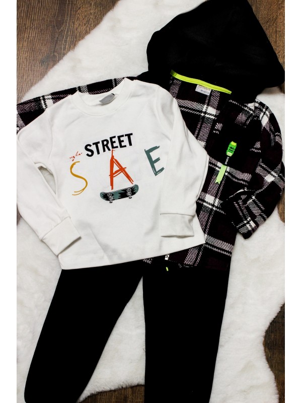 3-dielna súpravička obsahuje tričko s náposom, štýlovú károvanú mikinku s kapucňou a moderné tepláčiky
