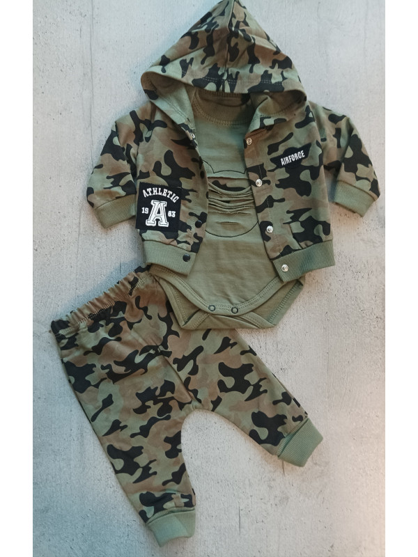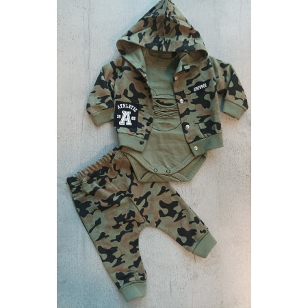 Súpravička v Army štýle obsahuje polodupačky, body a mikinku